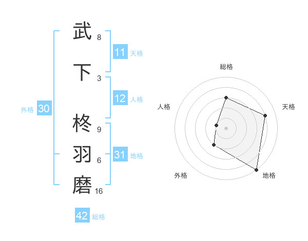 武下 柊羽磨さんの総格は42画の3点!
