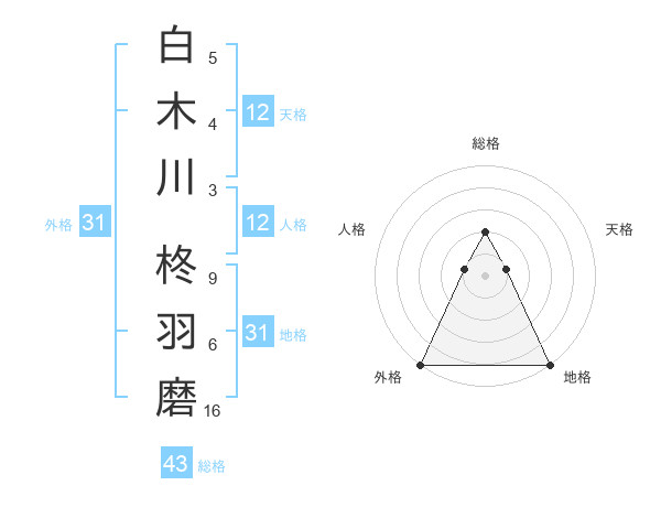 白木川 柊羽磨さんを姓名の画数から五運を鑑定