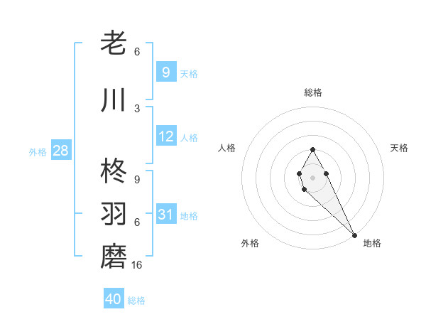 老川 柊羽磨さんを姓名の画数から五運を鑑定