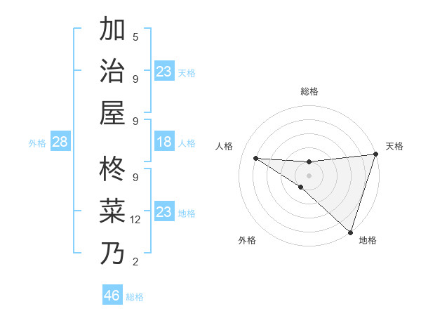 加治屋 柊菜乃さんを姓名の画数から五運を鑑定