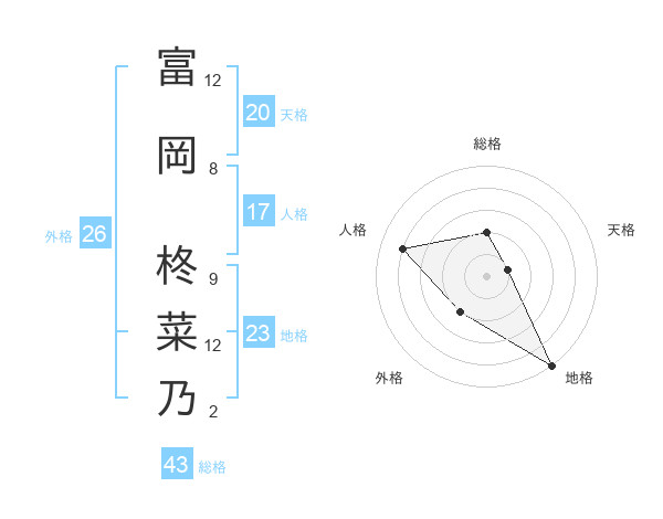 富岡 柊菜乃さんを姓名の画数から五運を鑑定
