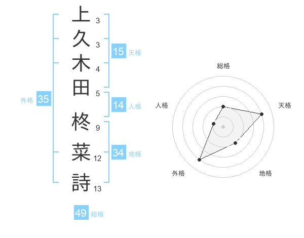 上久木田 柊菜詩さんの天格は15画の4点!