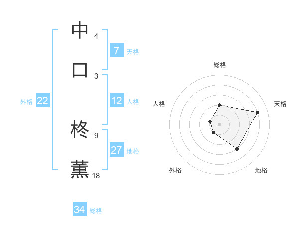 中口 柊薫さんの総格は34画の2点!