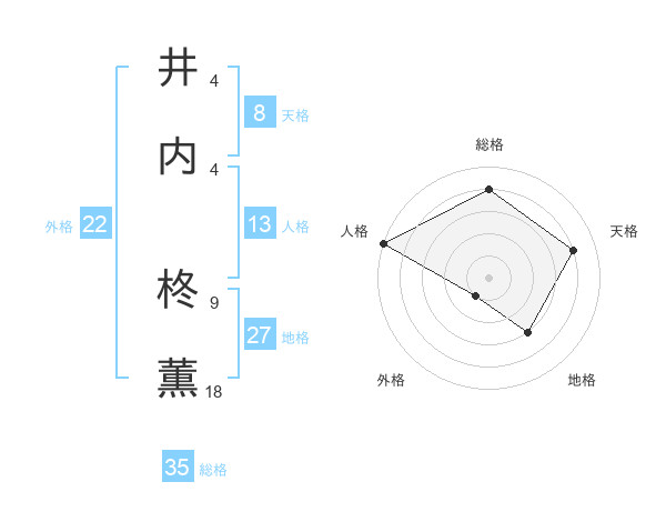 井内 柊薫さんの総格は35画の4点!