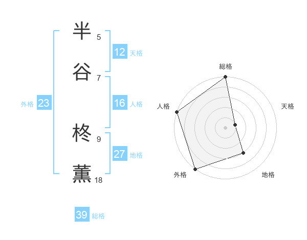半谷 柊薫さんの総格は39画の5点!