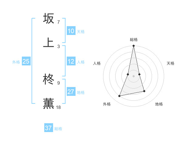 坂上 柊薫さんの総格は37画の5点!