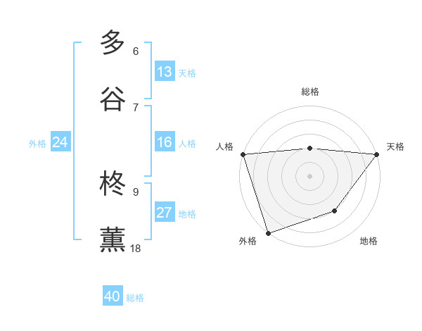 多谷 柊薫さんの天格は13画の5点!