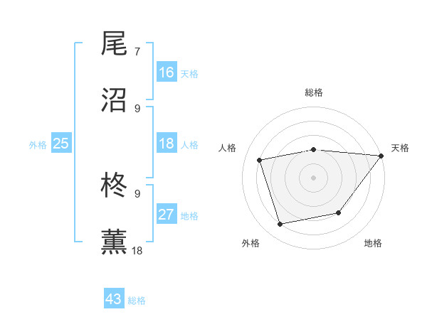 尾沼 柊薫さんの天格は16画の5点!