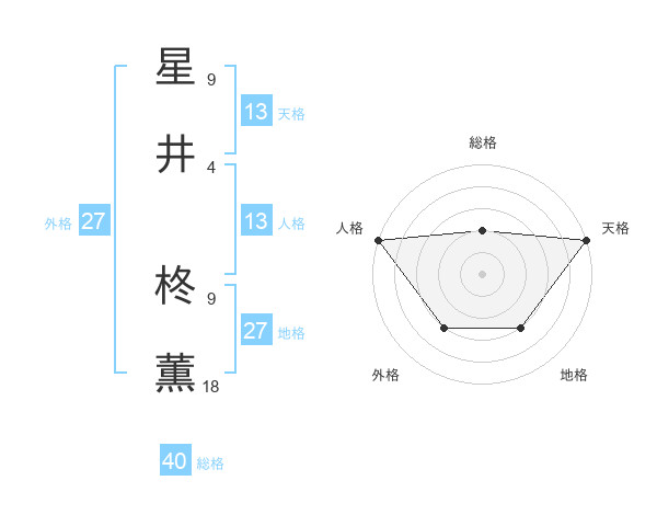 星井 柊薫さんの天格は13画の5点!