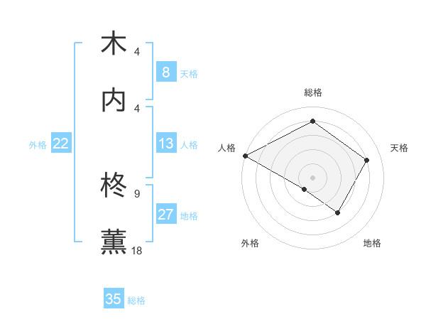 木内 柊薫さんの総格は35画の4点!