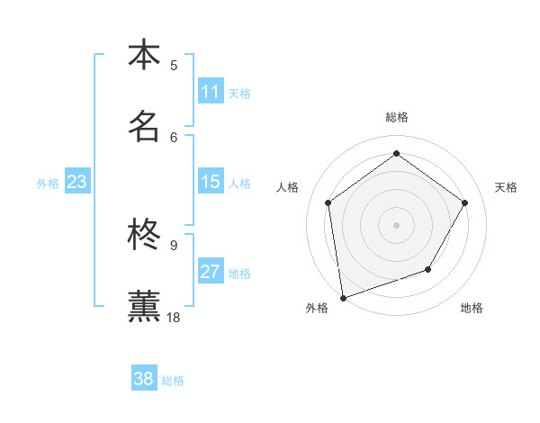 本名 柊薫さんの総格は38画の4点!