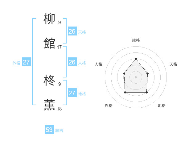 柳館 柊薫さんを姓名の画数から五運を鑑定