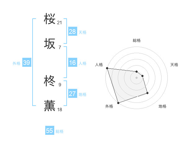 桜坂 柊薫さんの外格は39画の5点!