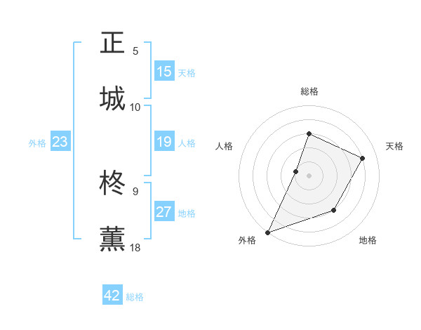 正城 柊薫さんの総格は42画の3点!
