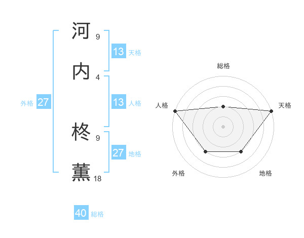 河内 柊薫さんの外格は27画の3点!