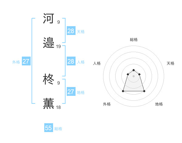 河邉 柊薫さんの総格は55画の1点!
