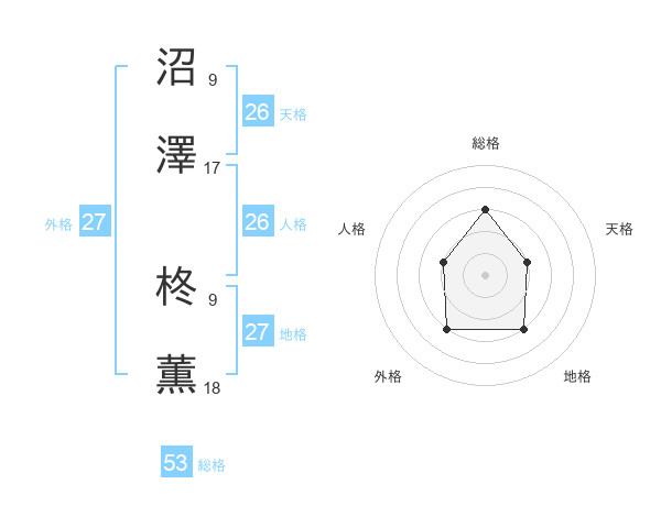 沼澤 柊薫さんを姓名の画数から五運を鑑定