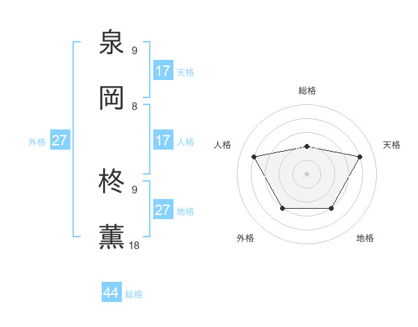 泉岡 柊薫さんの天格は17画の4点!