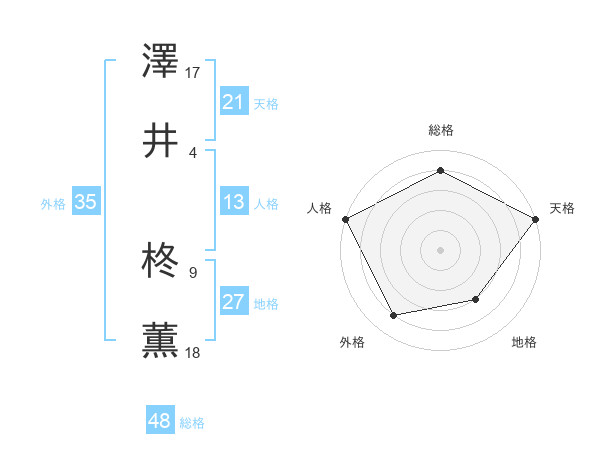 澤井 柊薫さんの総格は48画の4点!