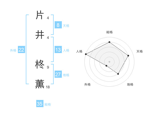 片井 柊薫さんの天格は8画の4点!