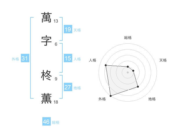 萬字 柊薫さんの外格は31画の5点!