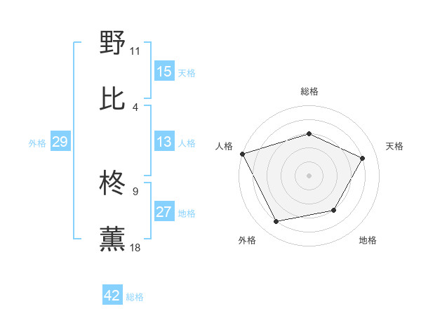 野比 柊薫さんを姓名の画数から五運を鑑定