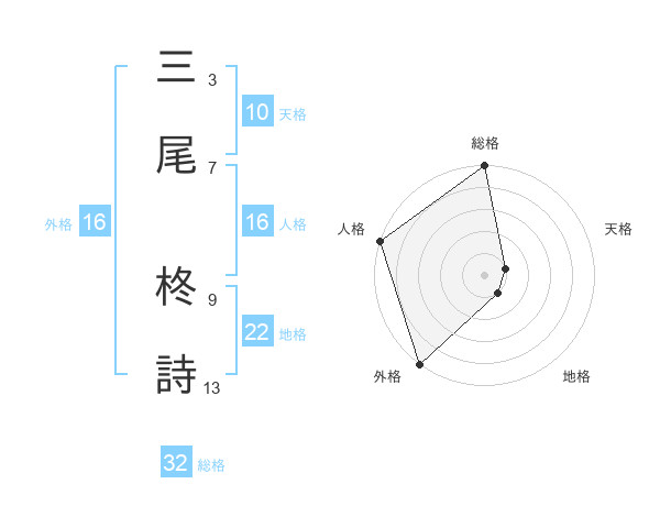 三尾 柊詩さんを姓名の画数から五運を鑑定