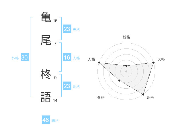 亀尾 柊語さんの天格は23画の5点!