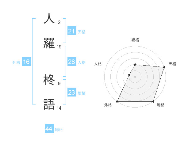 人羅 柊語さんを姓名の画数から五運を鑑定
