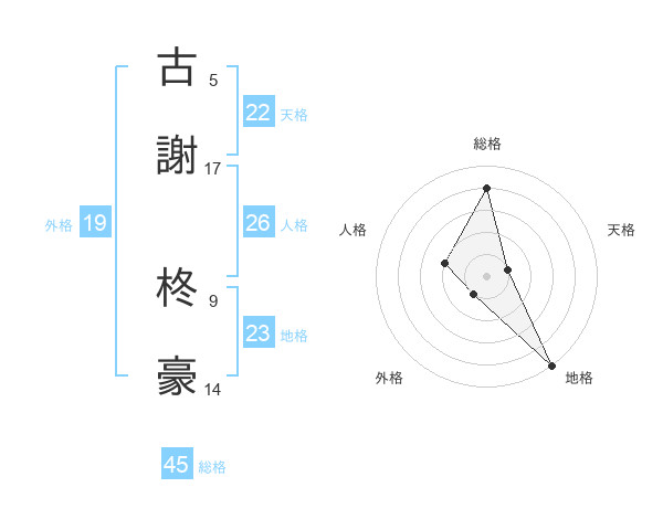 古謝 柊豪さんを姓名の画数から五運を鑑定