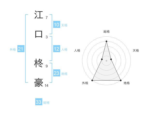 江口 柊豪さんの総格は33画の4点!