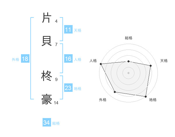 片貝 柊豪さんの総格は34画の2点!