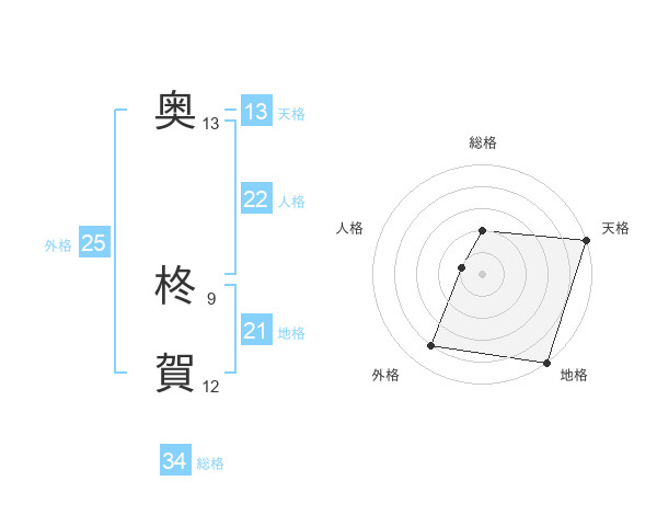 奥 柊賀さんの総格は34画の2点!