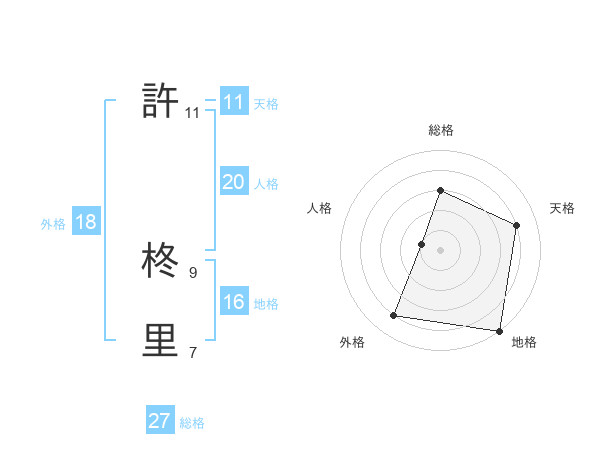 許 柊里さんの天格は11画の4点!