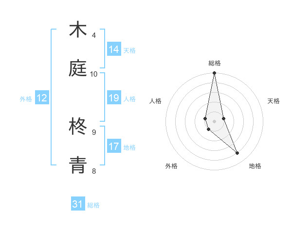 木庭 柊青さんの総格は31画の5点!