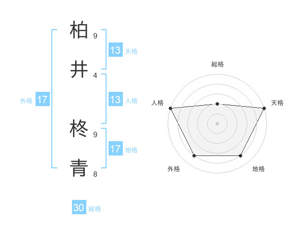 柏井 柊青さんの天格は13画の5点!