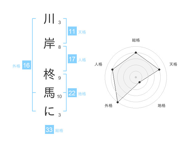 川岸 柊馬にさんの外格は16画の5点!