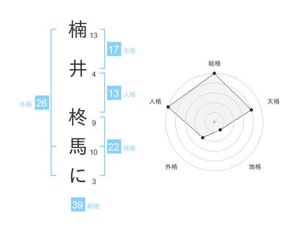 楠井 柊馬にさんの総格は39画の5点!