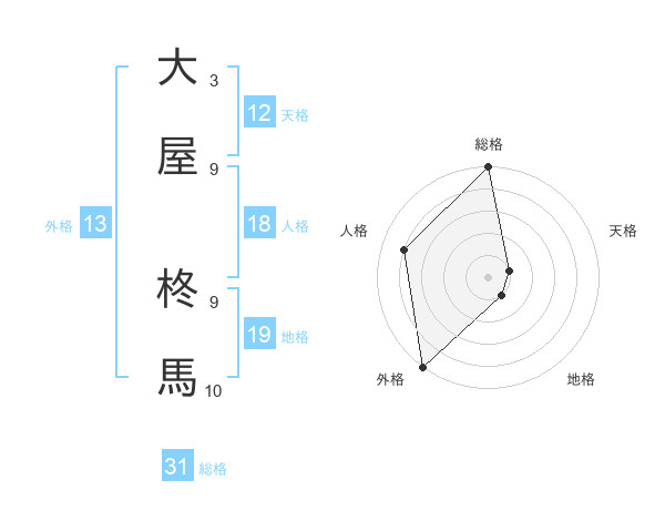 大屋 柊馬さんの総格は31画の5点!