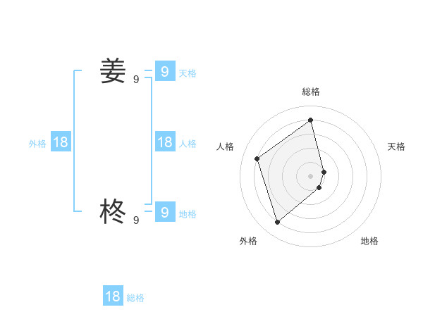姜 柊さんの総格は18画の4点!
