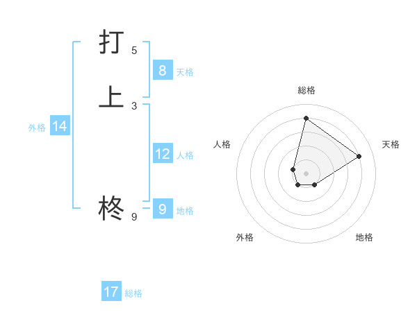 打上 柊さんの総格は17画の4点!