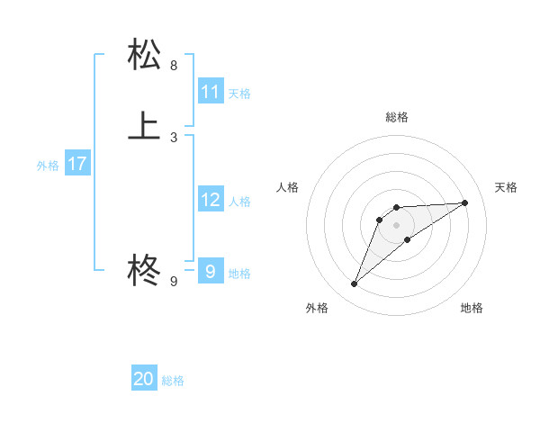 松上 柊さんの総格は20画の1点!