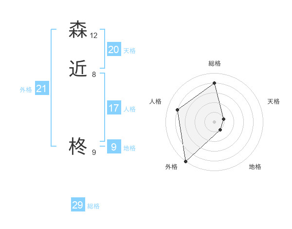 森近 柊さんの総格は29画の4点!