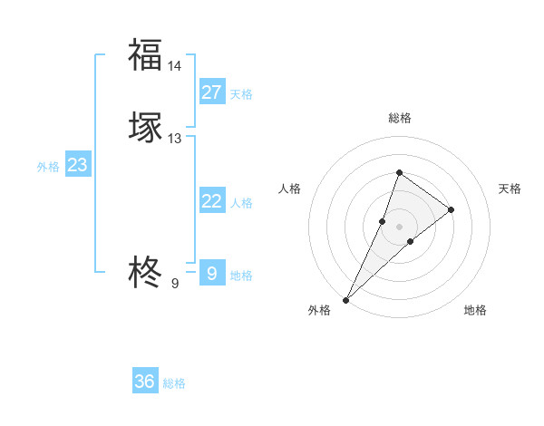 福塚 柊さんの外格は23画の5点!