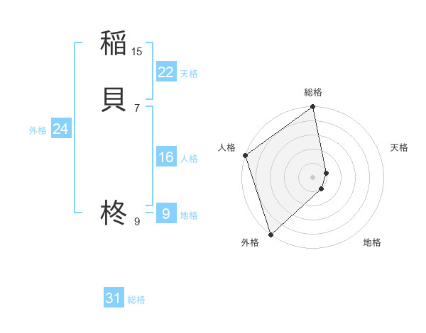 稲貝 柊さんの総格は31画の5点!