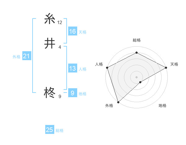 糸井 柊さんの総格は25画の4点!