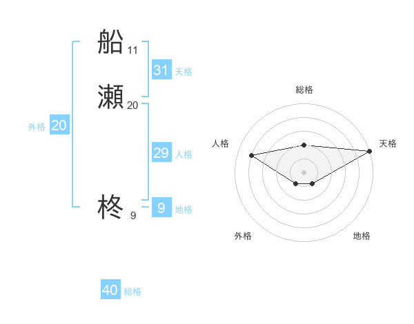 船瀬 柊さんの天格は31画の5点!