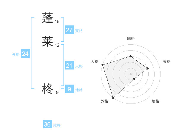 蓬莱 柊さんの総格は36画の3点!