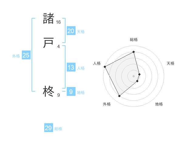 諸戸 柊さんの総格は29画の4点!
