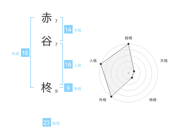 赤谷 柊さんの外格は16画の5点!